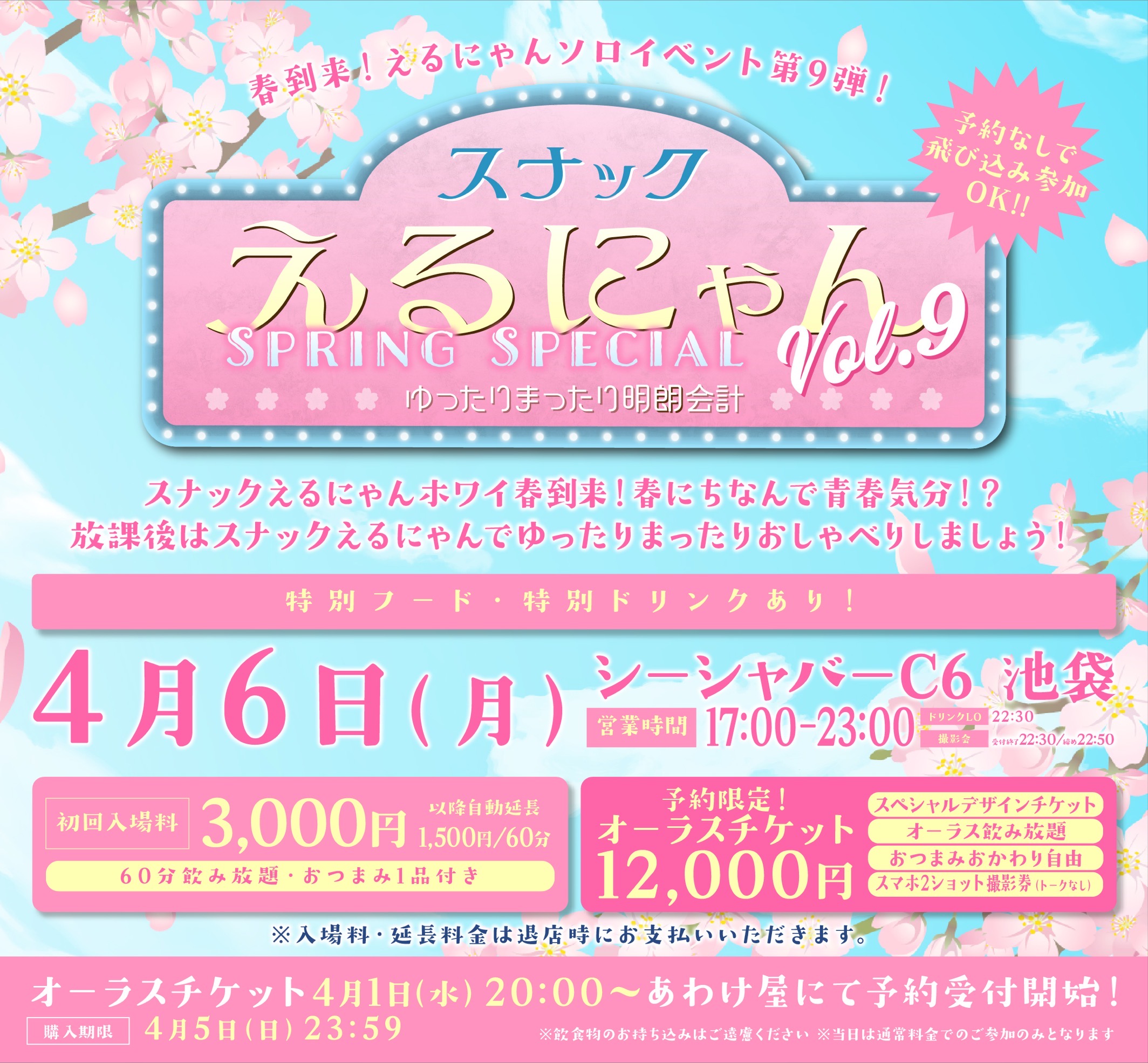 4月6日(月) 池袋シーシャバーC6 えるにゃんソロイベント第9弾! 「スナックえるにゃんVol.9」 〜ゆったりまったり明朗会計〜 🌸Spring Special🌸開催決定!!