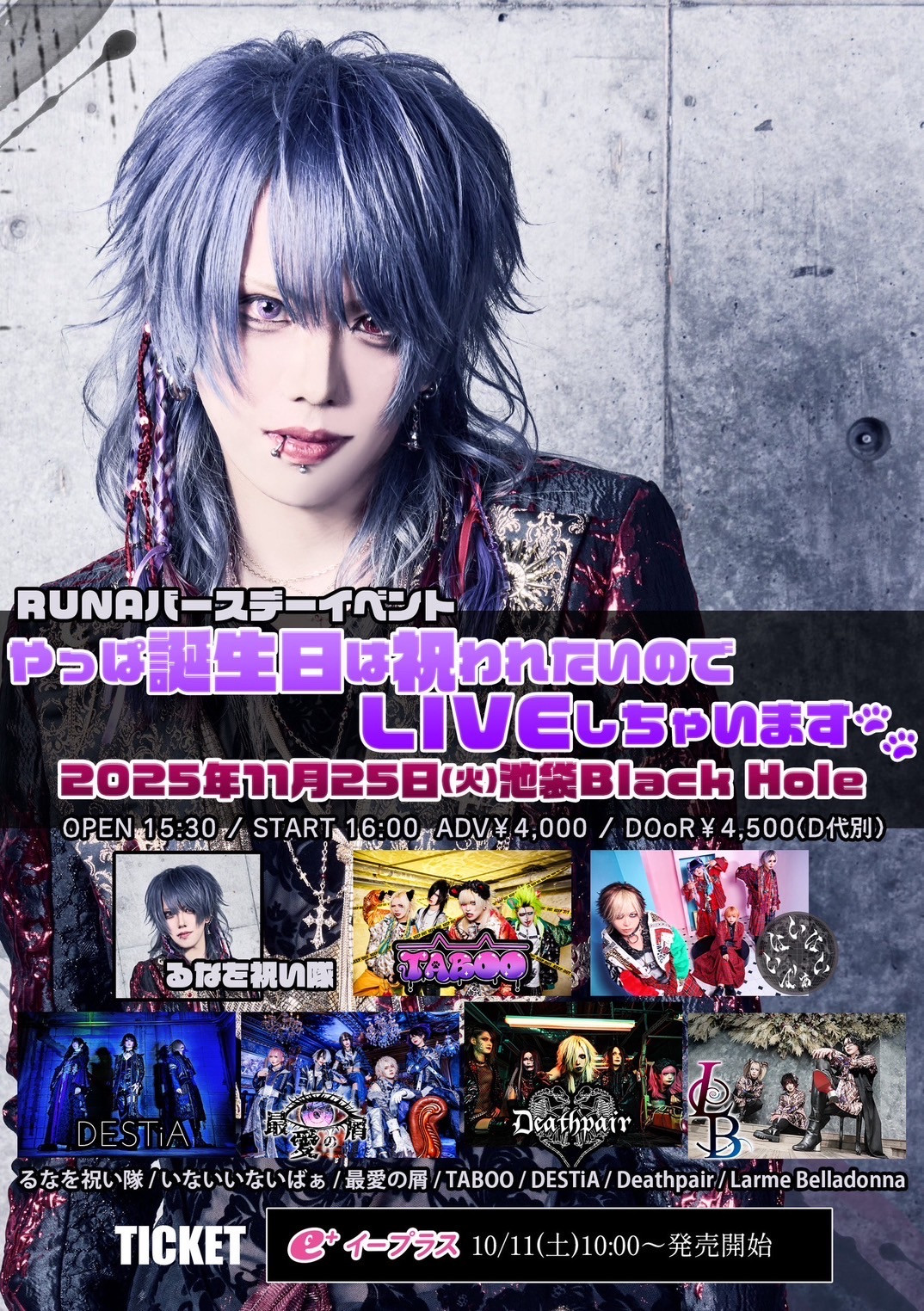 るなを祝い隊(尋弥サポート) / いないいないばぁ / 最愛の屑 / TABOO / DESTiA / Deathpair / Larme Belladonna