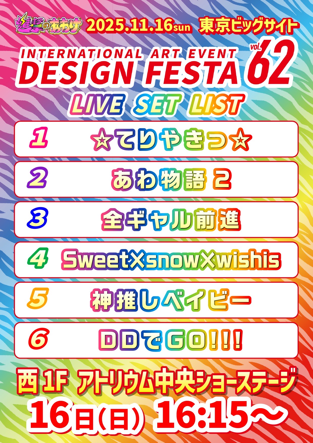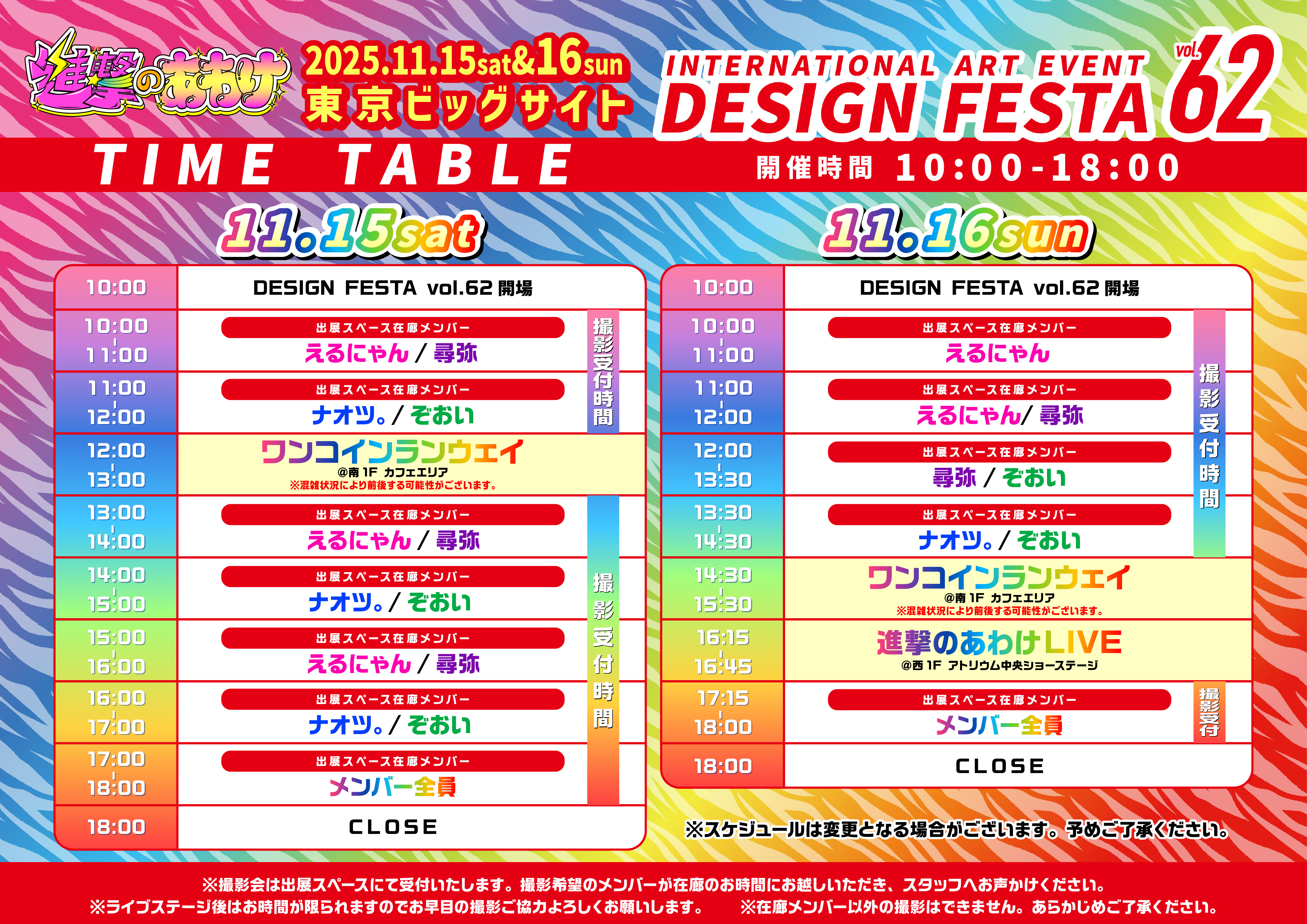 11月15日(土)16日(日) デザインフェスタvol.62 タイムテーブル&セトリ公開!